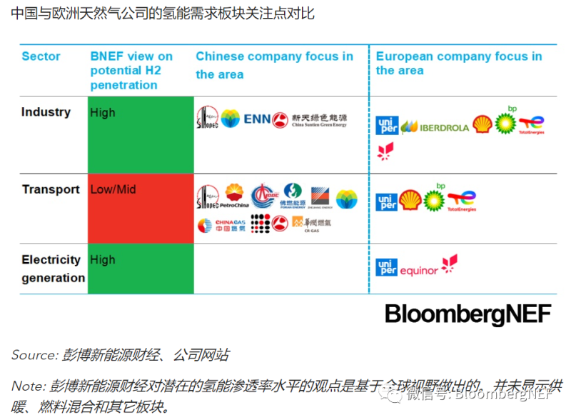 中國(guó)國(guó)有油氣公司在中國(guó)承諾碳中和后都宣布了各自的凈零目標(biāo),這些公司都希望以交通中氫能的應(yīng)用對(duì)沖汽油燃料未來銷售額的下滑趨勢(shì)。中國(guó)石化是三家中國(guó)國(guó)有油氣公司中目標(biāo)最為宏大的。它是中國(guó)目前最大的灰氫制造商,其位于內(nèi)蒙古和新疆的兩個(gè)項(xiàng)目也計(jì)劃在2022年投產(chǎn),具備510兆瓦的綠氫產(chǎn)能。與之相對(duì),2020年全年全球僅交付了200兆瓦電解氫。中國(guó)石化的項(xiàng)目有望供應(yīng)氫能用于化工生產(chǎn)和冶煉。