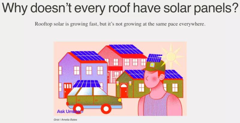 Grist.org網(wǎng)站發(fā)表署名Emily Pontecorvo的文章,題目是Why doesn’t every roof have solar panels?(為什么不是每個(gè)屋頂都有太陽(yáng)能板?)