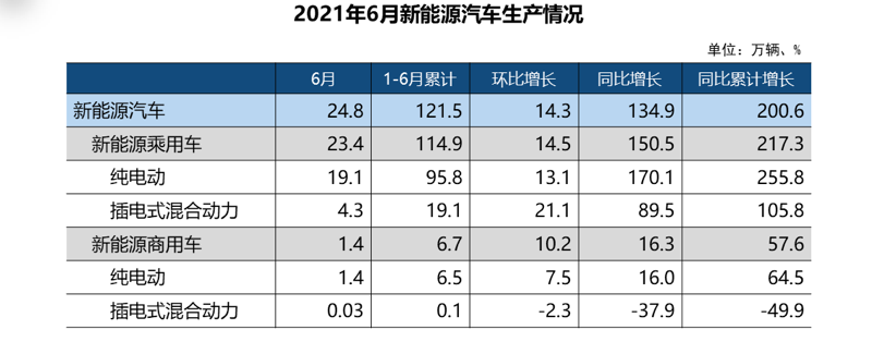中汽協(xié)數(shù)據(jù)顯示,今年前半年,國(guó)內(nèi)國(guó)內(nèi)新能源汽車(chē)乘用車(chē)的生產(chǎn)情況為121.5萬(wàn)輛,同比增長(zhǎng)200.6%。