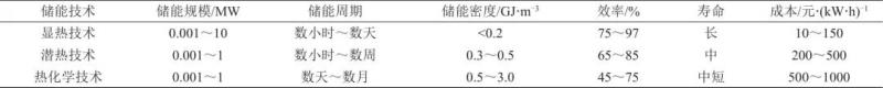 (2)儲熱技術可分為顯熱儲熱技術、潛熱儲熱技術和熱化學儲熱技術。顯熱儲熱技術具有儲熱規(guī)模大、壽命長、成本低、技術成熟度高等優(yōu)點,是研究最早、利用最廣泛、最成熟的技術;潛熱儲熱技術具有儲熱密度高、放熱過程溫度近乎恒定的優(yōu)點,是目前主要研究和應用熱點;熱化學儲熱技術具有更大的能量儲存密度可實現(xiàn)長期儲存熱能等優(yōu)點,但處于實驗室驗證階段。