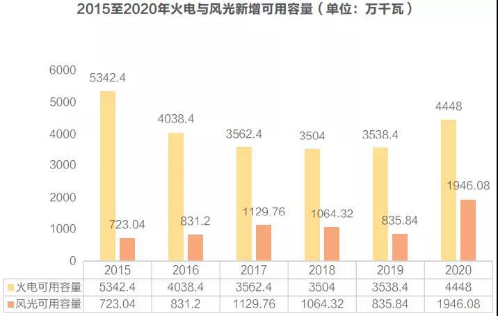 但這些都只是銘牌數(shù)據(jù),并非實際的可用裝機容量。如果按照火電的可用容量為銘牌容量的80%、風(fēng)光可用容量為銘牌容量的20%這一標(biāo)準來計算,火電與風(fēng)光的可用新增裝機容量立刻就有了顛覆性的變化。