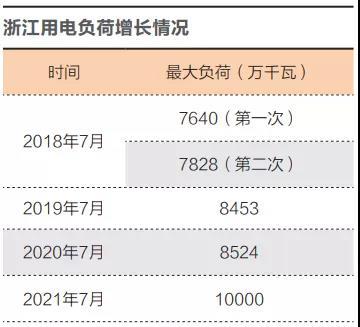 更大規(guī)模的增長案例在浙江省。2018年7月,浙江省兩次突破歷史最高用電負荷,其中第一次突破歷史最高用電負荷是7640萬千瓦;2021年7月最高用電負荷突破1億千瓦,增幅超過30%。