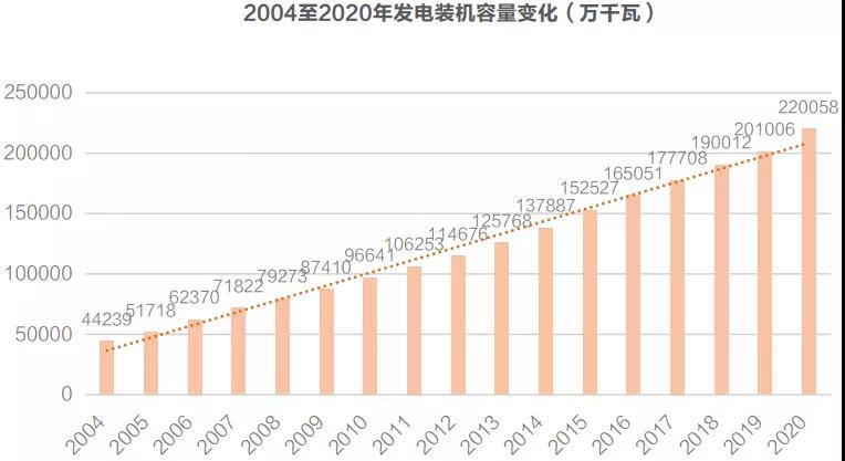 從行業(yè)發(fā)展的額實際看,無論是發(fā)電裝機總量,還是煤電、風(fēng)電、光伏裝機容量,都超過了《規(guī)劃》設(shè)定的目標(biāo)。2020年全社會用電量7.5萬億千瓦時,略超過預(yù)期值;煤電累計裝機超過12億千瓦。