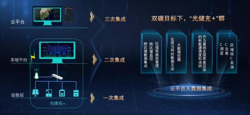 領(lǐng)充創(chuàng)新提出了三次集成技術(shù),通過對設(shè)備層、監(jiān)控層、云平臺的三次集成管理,構(gòu)建雙碳下“光儲充+”群的大數(shù)據(jù)云平臺。在設(shè)備側(cè)實(shí)現(xiàn)分組監(jiān)控;在站控側(cè)實(shí)現(xiàn)平臺可視可控;在大數(shù)據(jù)云平臺,實(shí)現(xiàn)跨區(qū)域數(shù)據(jù)集成,跨區(qū)域監(jiān)控,跨區(qū)域高級管理,從而實(shí)現(xiàn)更高層面的能源調(diào)度和消納。