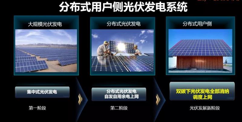 第一階段,集中式光伏發(fā)電;第二階段,自發(fā)自用余電上網(wǎng)。