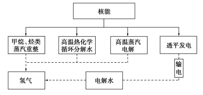 核能制氫所利用的主要是核反應(yīng)產(chǎn)生的熱量。如圖2所示,核能制氫技術(shù)路線包括:高溫重整烴類制氫、高溫?zé)峄瘜W(xué)循環(huán)分解水制氫、高溫蒸汽電解制氫、核電電解水制氫。
