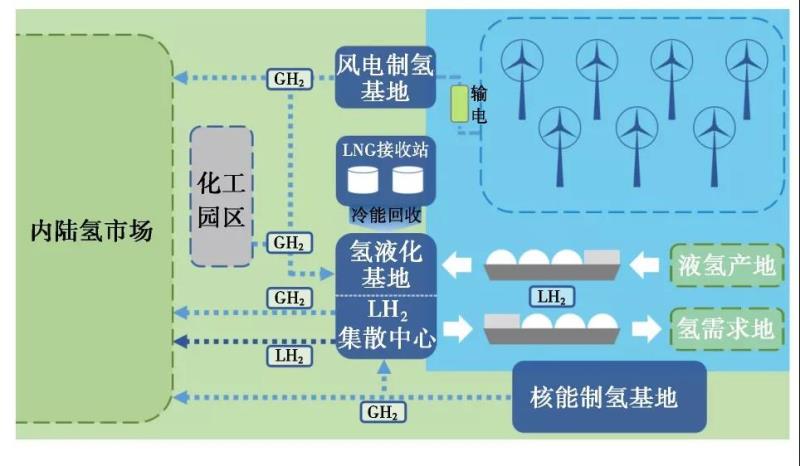 聯(lián)合風(fēng)電制氫、核能制氫、液氫港口,耦合形成沿海特色氫源基地,可發(fā)揮氫作為實(shí)體能源的優(yōu)勢(shì),助于氫實(shí)現(xiàn)對(duì)石油的替代,有利于向無(wú)碳社會(huì)過(guò)渡。