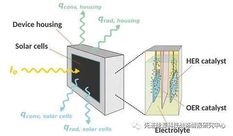 當(dāng)前,大規(guī)模水解制氫技術(shù)通常在50-1000℃下運行,太陽能水解的實驗研究通常采用約20℃的環(huán)境溫度。然而,小型分布式制氫需考慮室外溫度對設(shè)備運行的影響,例如為高海拔地區(qū)氣象站供電。在沒有外部加熱的情況下,設(shè)備的過程溫度將非常接近環(huán)境溫度。低電解質(zhì)溫度會導(dǎo)致更高的催化和離子傳輸過電位的損失,也會導(dǎo)致電解質(zhì)出現(xiàn)冷凍現(xiàn)象,使得制氫過程停止,冷凍后的體積膨脹也會損壞反應(yīng)設(shè)備。研究人員采用了低凝固點電解質(zhì)(如稀硫酸),以便在較低的溫度下使用。同時,通過熱耦合(利用太陽能電池產(chǎn)生的熱量)和設(shè)備隔熱來補償由于低工作溫度導(dǎo)致的效率損失。研究人員利用數(shù)值模型研究了低溫對太陽能水分解裝置效率的影響,并定量分析了熱耦合和隔熱裝置的影響。結(jié)果顯示,低溫將導(dǎo)致電化學(xué)組件的催化性能降低,歐姆損失增加,但另一方面會提升太陽能電池的效率。為了衡量兩種相反的效應(yīng),研究人員開發(fā)了一個開源模型,結(jié)合了太陽能電池參數(shù)、電化學(xué)參數(shù)以及熱通量,根據(jù)太陽能電池和催化劑的溫度相關(guān)電流-電壓特性預(yù)測太陽能到氫氣(STH)的轉(zhuǎn)換效率。隨后,針對由高效雙結(jié)或三結(jié)III–V族太陽能電池和電解水制氫(析氧和析氫催化劑分別為鉑<Pt>和銥氧化物<IrOx>)組成的裝置進行了計算,使用凝固點為-35℃、濃度30wt%的稀硫酸(H2SO4)作為電解質(zhì)。結(jié)果顯示,隨著室外溫度降低,基于雙結(jié)太陽能電池的無熱耦合系統(tǒng)STH效率先升高后降低;基于三結(jié)太陽能電池的系統(tǒng)STH效率穩(wěn)定下降;同等環(huán)境下采用熱耦合設(shè)計將STH效率提升了6%。進一步地,研究人員計算了設(shè)備隔熱對STH效率的影響。模型中通過鋁箔減少輻射損失,采用聚苯乙烯減少散熱。對于基于雙結(jié)太陽能電池的系統(tǒng),隔熱對隨溫度降低STH效率升高的階段有負面影響,對隨溫度降低STH效率降低的階段有正面影響;對基于三結(jié)太陽能電池的系統(tǒng),隔熱始終有正面影響。基于數(shù)值模擬結(jié)果,研究人員在實驗室條件下進行了驗證?;谏逃萌Y(jié)鎵銦磷/鎵銦砷/鍺(GaInP/GaInAs/Ge)太陽能電池和使用商用Pt和IrOx催化劑的電解器構(gòu)建了實驗裝置,在-20.5℃至-19.2℃的環(huán)境溫度、AM 1.5光照下運行了3小時,比較了無熱耦合、熱耦合系統(tǒng)和熱耦合/隔熱系統(tǒng)的工作電流、工作電壓和運行溫度。其中,電解器采用了新型的無膜概念,電極通過楔型塊分隔,產(chǎn)物利用浮力分離。由于運行中超過了熱中性電壓,無熱耦合系統(tǒng)的電解質(zhì)溫度僅略微升高,而太陽能電池溫度升高,降低了開路電位,因此工作電位略有增加并超過太陽能電池的最大功率點(MPP),導(dǎo)致工作電流急劇下降。而熱耦合系統(tǒng)和熱耦合/隔熱系統(tǒng)的電解液溫度分別達到-4.5℃和13.5℃,其對轉(zhuǎn)換效率的影響超過了太陽能電池的效率損失,工作電流增加,工作電位降低。根據(jù)實驗結(jié)果可得出,三種設(shè)計下的STH效率分別達到10.3%、11.2%和11.4%。