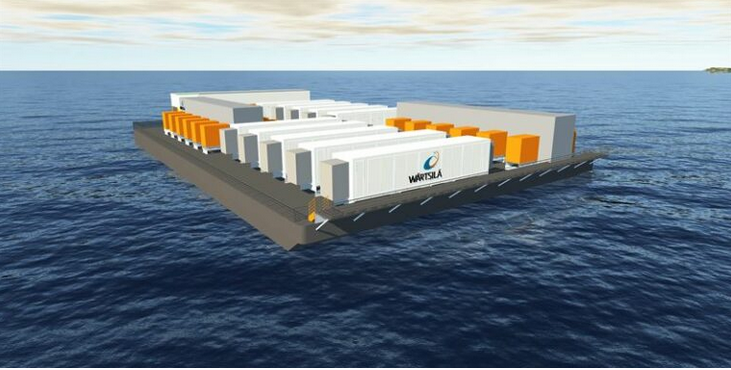 瓦錫蘭公司在動(dòng)力駁船部署的浮動(dòng)電池儲(chǔ)能系統(tǒng)外觀效果圖