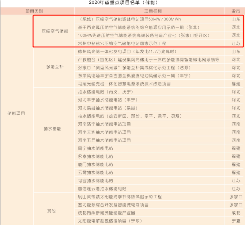 2019年7月份,由發(fā)改委辦公廳等四部門聯(lián)合制定了《貫徹落實(shí)<關(guān)于促進(jìn)儲(chǔ)能技術(shù)與產(chǎn)業(yè)發(fā)展的指導(dǎo)意見>2019-2020年行動(dòng)計(jì)劃》,提出了六大部分共16項(xiàng)具體措施。在先進(jìn)儲(chǔ)能技術(shù)研發(fā)方面,要求重點(diǎn)推進(jìn)大容量壓縮空氣儲(chǔ)能等重大先進(jìn)技術(shù)項(xiàng)目建設(shè),推動(dòng)百兆瓦壓縮空氣儲(chǔ)能項(xiàng)目實(shí)現(xiàn)驗(yàn)證示范。