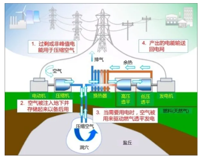 ▲壓縮空氣儲(chǔ)能技術(shù)原理
