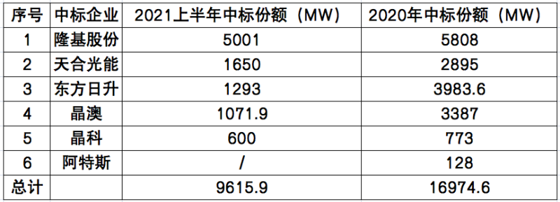 自年初中核集團(tuán)開啟2021年首次大規(guī)模組件招標(biāo)以來(lái),截止到2021年6月底,國(guó)內(nèi)以大唐、華電、中核為代表的電力央企已經(jīng)陸續(xù)完成逾29GW的光伏組件招標(biāo)與定標(biāo)工作。