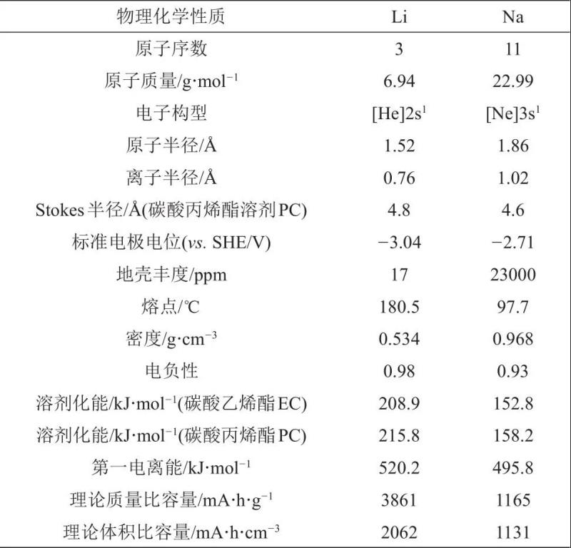 表1 鋰與鈉的物理化學性質(zhì)對比