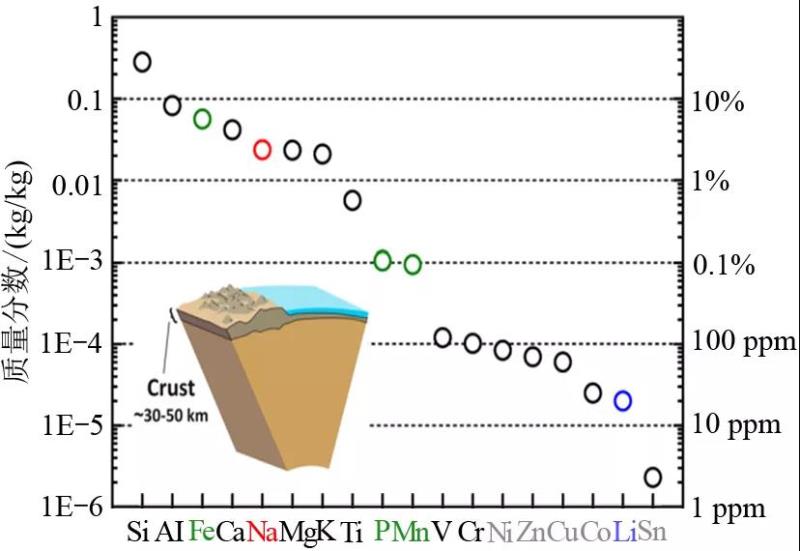 圖1 地殼中部分化學元素的豐度