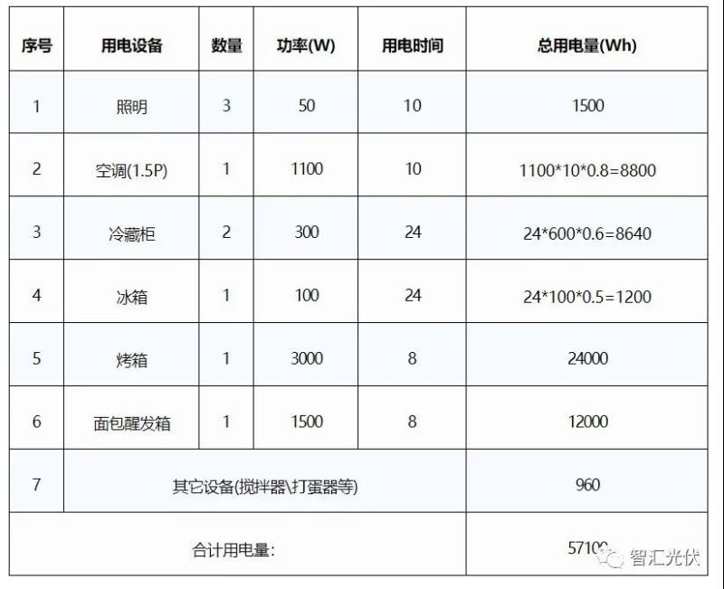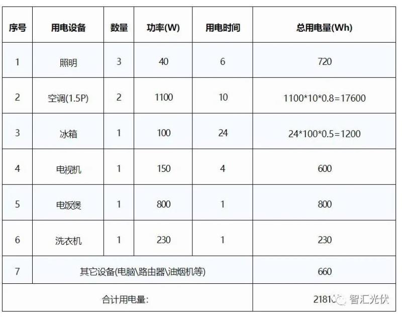 其用電設(shè)備和功率如下表所示: