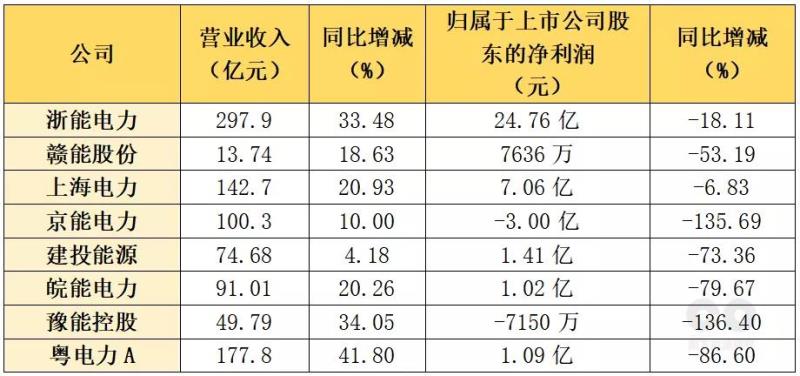 2021年上半年地方發(fā)電企業(yè)上市公司業(yè)績指標(biāo)