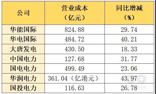 2021年上半年主要發(fā)電央企上市公司營業(yè)成本