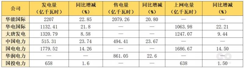 2021年上半年主要發(fā)電央企上市公司發(fā)電量
