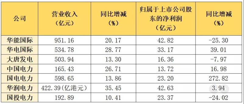 2021年上半年主要發(fā)電央企上市公司業(yè)績指標(biāo)