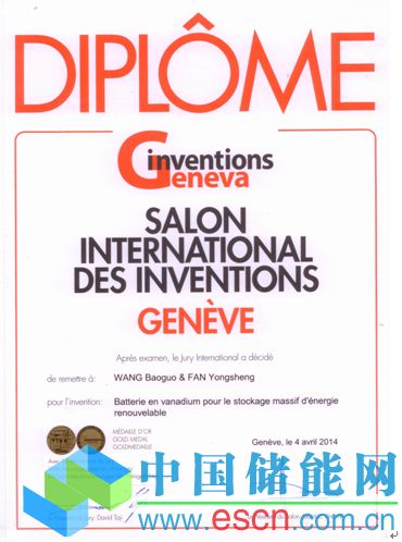 中國(guó)儲(chǔ)能網(wǎng)訊:在2014年4月2~6日舉行的第42屆瑞士日內(nèi)瓦國(guó)際發(fā)明博覽會(huì)上,清華大學(xué)王保國(guó)教授課題組的科研成果“大規(guī)模蓄電儲(chǔ)能的全釩液流電池技術(shù)與裝備” 獲展覽會(huì)特別金獎(jiǎng)。日內(nèi)瓦國(guó)際發(fā)明展創(chuàng)辦于1973年,是世界上舉辦歷史最長(zhǎng)、規(guī)模最大的發(fā)明展。本屆發(fā)明展的參觀人數(shù)達(dá)到6萬(wàn)人,共評(píng)出65項(xiàng)特別金獎(jiǎng)。全釩液流電池是一種適用于風(fēng)能、太陽(yáng)能等可再生能源發(fā)電過(guò)程的大容量蓄電儲(chǔ)能裝備,能夠克服風(fēng)能、太陽(yáng)能發(fā)電的不穩(wěn)定、不連續(xù)的缺陷。利用該研究成果已經(jīng)開(kāi)發(fā)成功5 kW、10 kW兩種規(guī)格的電堆,能量效率超過(guò)73%,進(jìn)入批量試制階段。該電池具有容量大、壽命長(zhǎng)、效率高、成本低、安全可靠的特點(diǎn)。清華大學(xué)的研究成果采用自主創(chuàng)新的質(zhì)子傳導(dǎo)膜、電解液、電堆設(shè)計(jì)與制造技術(shù),在電池性能與性價(jià)比方面十分具有競(jìng)爭(zhēng)力。本次在日內(nèi)瓦國(guó)際發(fā)明展覽會(huì)獲獎(jiǎng),是我國(guó)全釩液流電池儲(chǔ)能裝備與技術(shù)在國(guó)際上首次獲得大型獎(jiǎng)項(xiàng),對(duì)我國(guó)儲(chǔ)能技術(shù)與產(chǎn)品在國(guó)際上得到認(rèn)可具有里程碑意義。