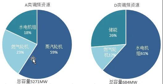 在市場收益驅(qū)動下,大規(guī)模儲能積極參與PJM快速調(diào)頻。下圖展示了某年P(guān)JM調(diào)頻市場總A類和D類調(diào)頻資源容量及比例??梢钥吹?,參與PJM調(diào)頻市場的電化學(xué)儲能占快速響應(yīng)資源的26%。