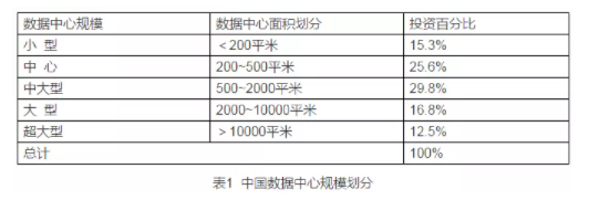 其中,隨著時(shí)間的推移,小型數(shù)據(jù)中心的指標(biāo)定義也不斷在變化,在2-3年前,100平米以下的可以定義為小型數(shù)據(jù)中心,但是隨著機(jī)房逐漸的集中化、大型化,當(dāng)前200平米以下的面積的機(jī)房定義為小型數(shù)據(jù)中心更為貼切。具體劃分請(qǐng)參看下表: