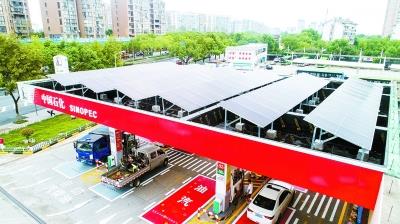圖為加油站頂棚上的光伏板。