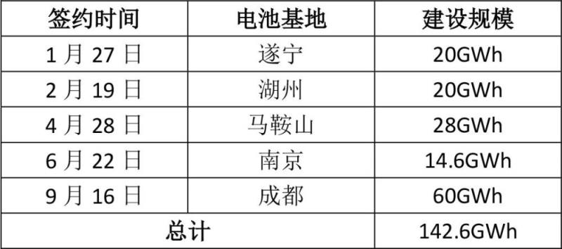 蜂巢能源2021年簽約動(dòng)力電池項(xiàng)目