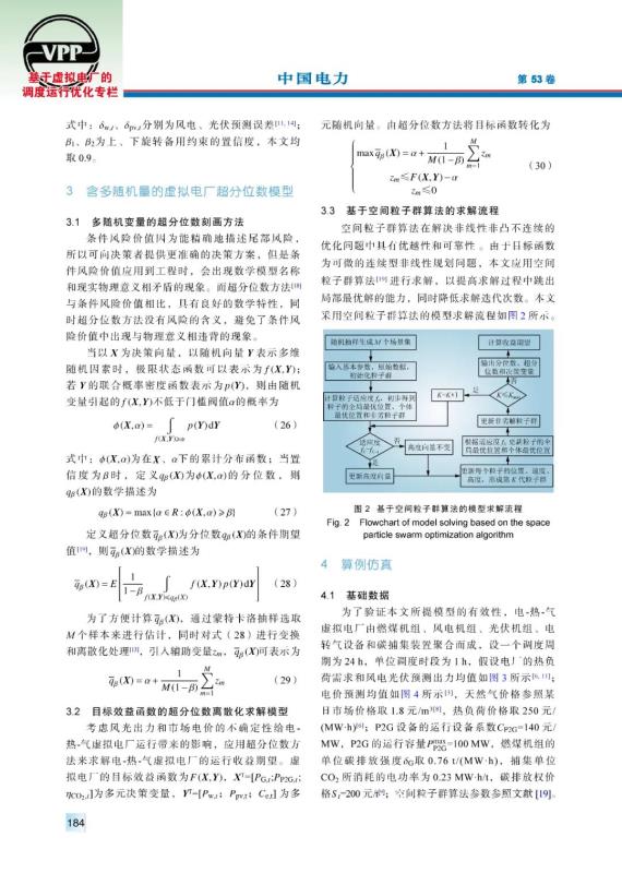 摘要:虛擬電廠總體降低了不確定因素的影響,但若不考慮其內(nèi)部的隨機(jī)性,則會使虛擬電廠在參與電力、天然氣市場過程中,因其調(diào)度方案的保守性,難以獲得最高的經(jīng)濟(jì)效益。為了充分挖掘虛擬電廠的經(jīng)濟(jì)效益,提出了一種氣電市場下計及電價和風(fēng)光不確定性的電-熱-氣虛擬電廠隨機(jī)優(yōu)化調(diào)度模型。模型目標(biāo)函數(shù)為虛擬電廠總效益,即售電售熱售氣收益與電轉(zhuǎn)氣成本、碳捕集成本、碳排放權(quán)成本和燃料成本之差。引入超分位數(shù)方法將含多隨機(jī)變量的虛擬電廠總效益最優(yōu)模型轉(zhuǎn)化為其超分位數(shù)隨機(jī)優(yōu)化模型,為了便于計算進(jìn)而處理為其離散化計算模型,并利用空間粒子群算法進(jìn)行求解。算例分析表明:虛擬電廠通過優(yōu)化售電和售氣方案來獲得最優(yōu)效益,在參與氣電市場過程中考慮多種隨機(jī)變量,使得虛擬電廠規(guī)避風(fēng)險后有更多的機(jī)會獲得更高的經(jīng)濟(jì)效益。
