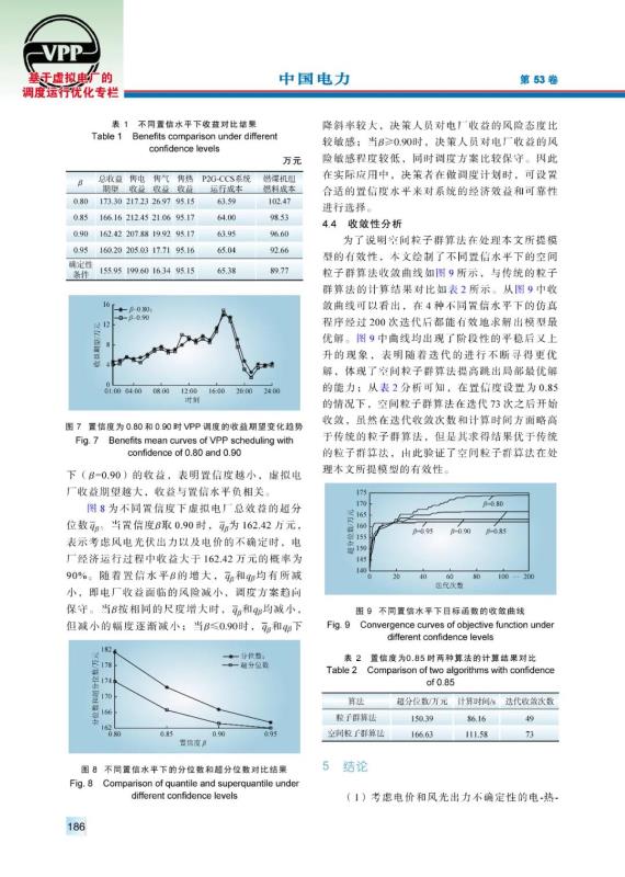 結(jié)論:(1)考慮電價和風(fēng)光出力不確定性的電-熱-氣虛擬電廠隨機(jī)優(yōu)化模型所得收益的期望值高于確定性模型,從而降低了確定性模型的調(diào)度保守性,使得虛擬電廠有更多的機(jī)會獲得更高的經(jīng)濟(jì)效益,更適于其市場行為。(2)電-熱-氣虛擬電廠的收益與置信水平之間存在的負(fù)相關(guān)關(guān)系,更切實地反映了投資領(lǐng)域中的低風(fēng)險低收益、高風(fēng)險高收益的特點(diǎn),電廠決策者可根據(jù)自身風(fēng)險偏好來權(quán)衡風(fēng)險與收益之間的關(guān)系。(3)將虛擬電廠從僅參與電力市場擴(kuò)展到同時參與電力市場和天然氣市場,有利于獲得更好的經(jīng)濟(jì)效益和調(diào)度運(yùn)行的靈活性。若進(jìn)一步考慮未來氣價和熱價的隨機(jī)性,則可更加反映多種市場的特點(diǎn)。虛擬電廠參與氣電市場的研究方法可擴(kuò)展至其參與多種市場如電、氣、熱市場、旋轉(zhuǎn)備用市場等的研究。