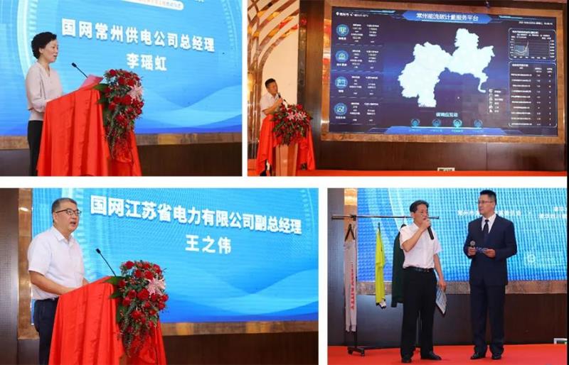 江蘇省發(fā)改委二級巡視員李義、江蘇省電力公司副總經理王之偉、清華大學電機系主任、清華四川能源互聯網研究院院長康重慶、常州供電公司總經理李瑤虹、常州市發(fā)展和改革委員會副主任朱建江共同按下啟動按鈕,宣布全國首套電力系統(tǒng)“源網荷”實體碳表裝置與碳管理平臺正式發(fā)布上線。
