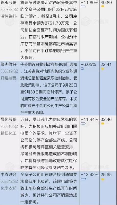 此后,帝歐家居(002798.SZ)、晨化股份(300610.SZ)、中農(nóng)聯(lián)合(003042.SZ)、優(yōu)彩資源(002998.SZ)、利民股份(002734.SZ)、潤豐股份(301035.SZ)等多家上市公司均表示,受限電影響,生產(chǎn)將分別受到不同程度的影響。