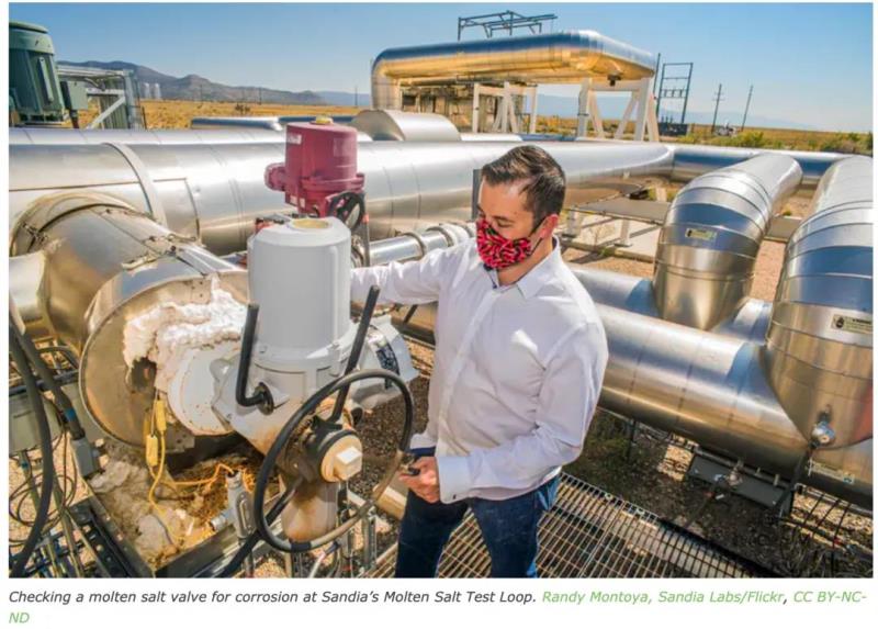 光熱太陽能聚焦發(fā)電仍然相對昂貴,為了與其他形式的能源生產(chǎn)和儲存競爭,光熱發(fā)電需要提高效率。實(shí)現(xiàn)這一目標(biāo)的一種方法是提高鹽的加熱溫度,從而實(shí)現(xiàn)更高效的電力生產(chǎn)。不幸的是,目前使用的鹽在高溫下不穩(wěn)定。研究人員正在努力開發(fā)新的鹽或其他材料,可以承受高達(dá)705攝氏度的溫度。如何達(dá)到更高溫度的一個(gè)主要想法是加熱沙子而不是鹽,因?yàn)樯匙涌梢猿惺芨叩臏囟?。美國能源部最近根?jù)這一概念,為一個(gè)示范性光熱太陽能發(fā)電廠提供資金。