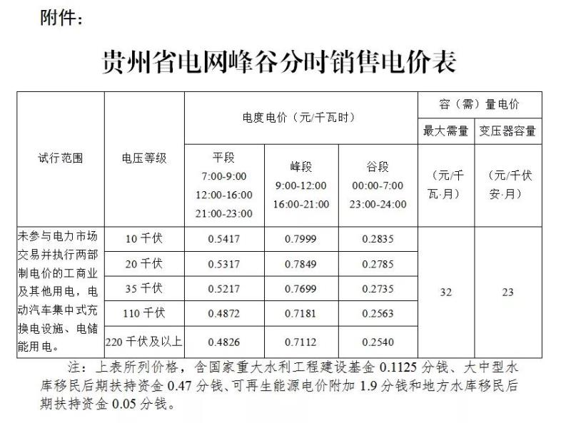 附件:貴州省電網(wǎng)峰谷分時銷售電價表