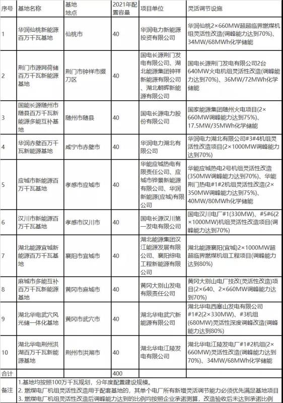 湖北省能源局關于公布2021年平價新能源項目的通知
