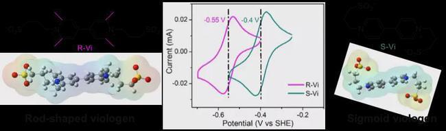 該成果以“分子空間結(jié)構(gòu)調(diào)控:‘棒狀’紫精電解質(zhì)助力長(zhǎng)壽命水系有機(jī)液流電池發(fā)展”(Spatial Structure Regulation: A Rod-Shaped Viologen Enables Long Lifetime in Aqueous Redox Flow Batteries)為題發(fā)表于國(guó)際知名期刊《德國(guó)應(yīng)用化學(xué)》(Angew. Chem. Int. Ed.)上,博士研究生李宏斌為論文第一作者,宋江選教授和范豪助理教授為通訊作者,西安交通大學(xué)金屬材料強(qiáng)度國(guó)家重點(diǎn)實(shí)驗(yàn)室為論文唯一通訊單位。這也是該團(tuán)隊(duì)繼前期五元環(huán)氮氧自由基、六元環(huán)哌啶類(lèi)氮氧自由基、吩噁嗪類(lèi)堿性蘭水性液流電池電極材料研究工作之后的又一重要進(jìn)展。