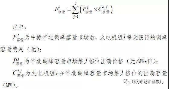 《華北電力調(diào)峰容量市場運(yùn)營規(guī)則(暫行)》則是按容量給予火電調(diào)峰機(jī)組回報(bào),華北調(diào)峰容量市場按季度開展?;痣姍C(jī)組只要中標(biāo),就可以每天獲取調(diào)峰容量費(fèi)用,具體公式為: