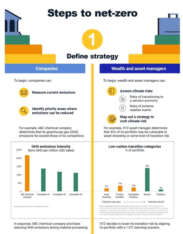 首先,企業(yè)可以測量當(dāng)前的排放量,并確定可以減少排放的優(yōu)先領(lǐng)域。同樣,投資者的財富和資產(chǎn)管理人可以評估氣候風(fēng)險,制定出遏制氣候風(fēng)險的戰(zhàn)略。