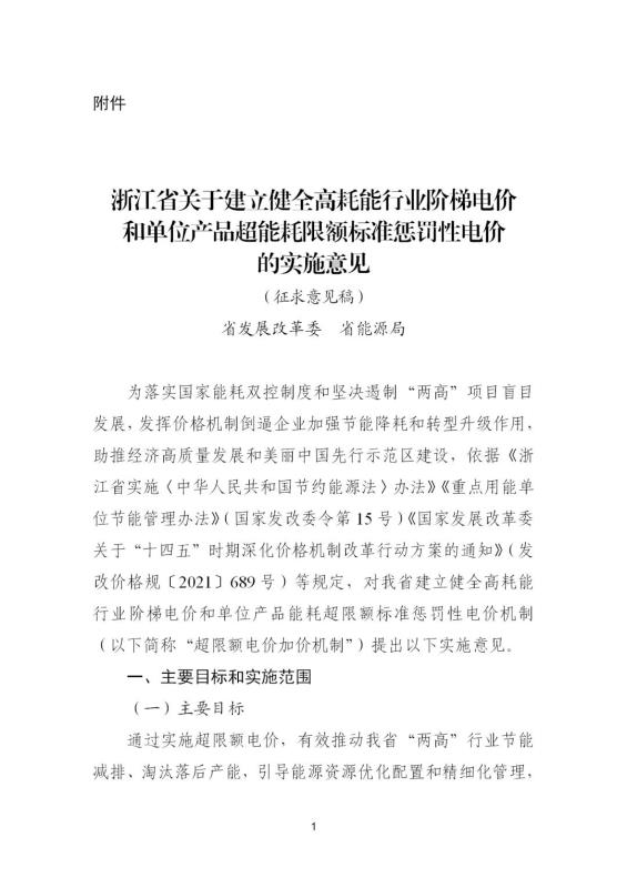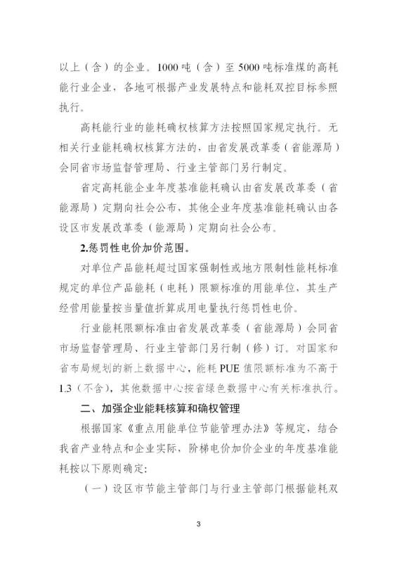近期,浙江省發(fā)改委發(fā)布了《浙江省關于建立健全高耗能行業(yè)階梯電價和單位產品超能耗限額標準懲罰性電價的實施意見(征求意見稿)》。其中,明確了執(zhí)行加價的行業(yè)范圍。八大高耗能行業(yè)列入了階梯電價加價范圍。八大高耗能行業(yè)主要指:紡織、非金屬礦物制品業(yè)、金屬冶煉及壓延加工業(yè)、化學原料及化學制品制造業(yè)、石油煤炭及其他燃料加工、造紙和紙制品、化學纖維制造、電力熱力的生產和供應業(yè)。同時,浙江本次將“數據中心”作為階梯電價加價范疇。