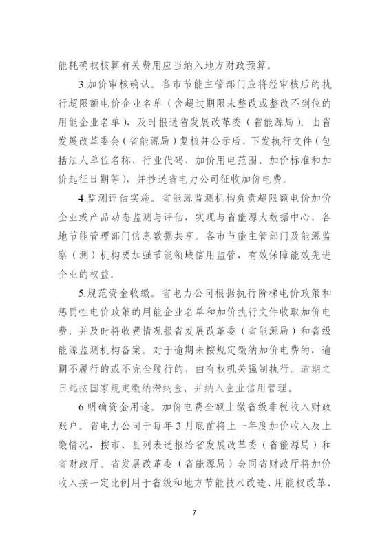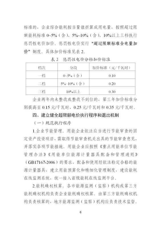 (二)懲罰性電價。對于單位產品用能量超過能耗限額標準的,企業(yè)綜合能耗按當量值折算成用電量,按照超過限額能耗標準0~5%(含)、5%~10%(含)、10%以上三檔執(zhí)行懲罰性電價加價。懲罰性電價實行“超過限額標準全電量加價”制度。