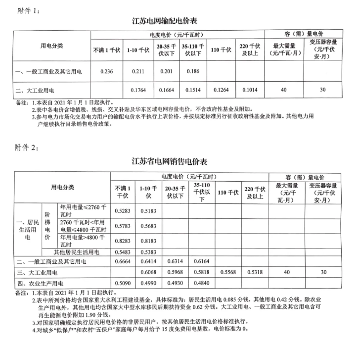 (通知官方鏈接:http://fzggw.jiangsu.gov.cn/art/2020/11/3/art_72382_9554755.html,銷售電價附件下載地址:http://fzggw.jiangsu.gov.cn/module/download/downfile.jsp?classid=0&filename=c5e18d664a0f4a05a0e8affa6fa0fce8.pdf)