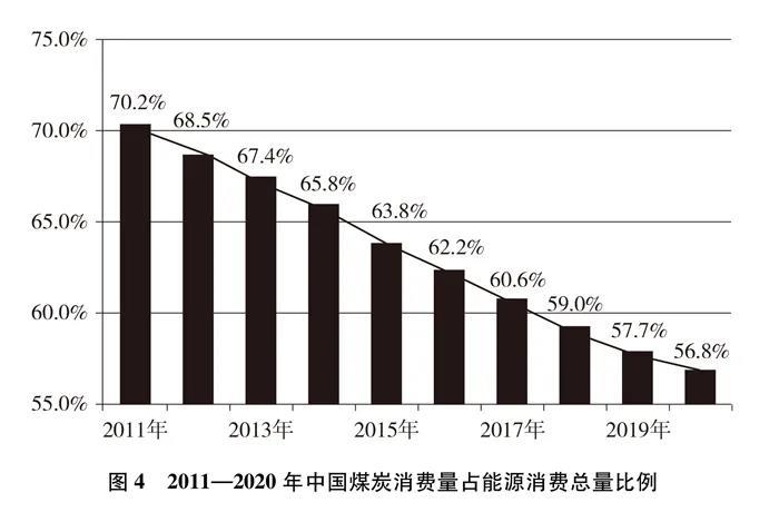 能源消費(fèi)結(jié)構(gòu)向清潔低碳加速轉(zhuǎn)化。為應(yīng)對化石能源燃燒所帶來的環(huán)境污染和氣候變化問題,中國嚴(yán)控煤炭消費(fèi),煤炭消費(fèi)占比持續(xù)明顯下降。2020年中國能源消費(fèi)總量控制在50億噸標(biāo)準(zhǔn)煤以內(nèi),煤炭占能源消費(fèi)總量比重由2005年的72.4%下降至2020年的56.8%。中國超額完成“十三五”煤炭去產(chǎn)能、淘汰煤電落后產(chǎn)能目標(biāo)任務(wù),累計淘汰煤電落后產(chǎn)能4500萬千瓦以上。截至2020年底,中國北方地區(qū)冬季清潔取暖率已提升到60%以上,京津冀及周邊地區(qū)、汾渭平原累計完成散煤替代2500萬戶左右,削減散煤約5000萬噸,據(jù)測算,相當(dāng)于少排放二氧化碳約9200萬噸。