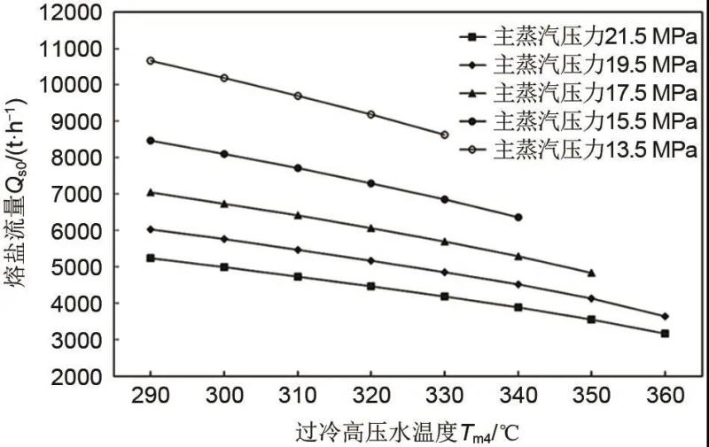 圖5 熔鹽流量(Qs0)隨過冷高壓水溫度(Tm4)的變化關(guān)系