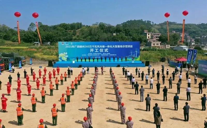 10月25日,2021年廣西橫州260萬千瓦風(fēng)光儲一體化大型基地示范項目開工儀式在橫州市馬山鎮(zhèn)平安村天堂嶺舉行,該示范項目是廣西2021年單體最大的一體化項目,總投資約 128 億元。