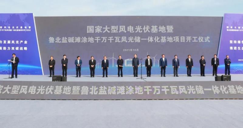 10月28日,國家大型風(fēng)電光伏基地暨魯北鹽堿灘涂地千萬千瓦風(fēng)光儲一體化基地,首批總裝機(jī)200萬千瓦集中式光伏發(fā)電項目開工儀式在濰坊舉行。