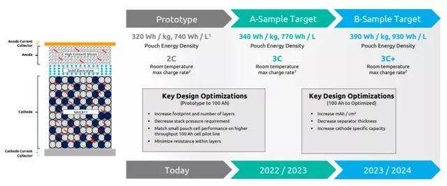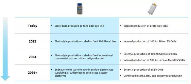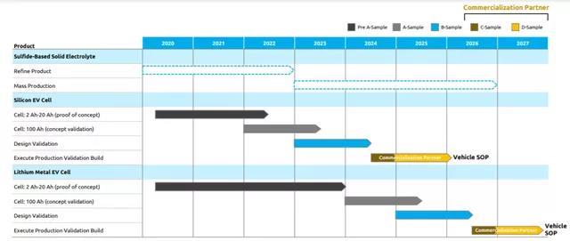 目前Solid Power的產(chǎn)品,從2Ah到20Ah,在10月的分析師會(huì)議里面還加入了2022年100Ah的計(jì)劃。如果真的完成這個(gè)計(jì)劃的話,這顆電池可以在2022年做出一些樣品來(lái),這些小批量可以給兩家車企進(jìn)行實(shí)驗(yàn)室測(cè)試,甚至可以裝幾臺(tái)車裝車測(cè)試了。