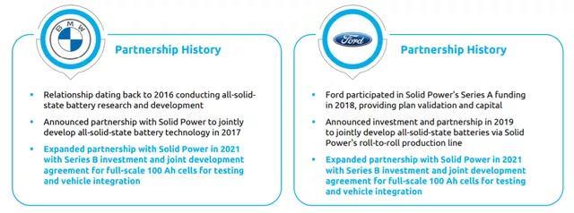 這家公司主要受到福特和寶馬的投資逐步成長(zhǎng)起來(lái),寶馬和福特將在2022年向Solid Power采購(gòu)試驗(yàn)車的固態(tài)電池。