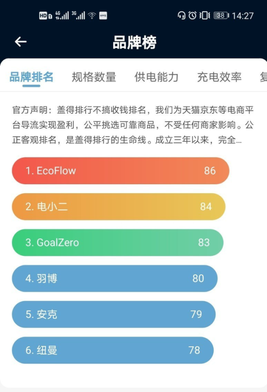 由于產(chǎn)品定位的原因,居民在只為滿足應(yīng)對(duì)停電需求而購(gòu)買商品時(shí),會(huì)更多關(guān)注“經(jīng)濟(jì)實(shí)惠”。但如果將戶外工作、自駕游、露營(yíng)等需求都進(jìn)行考慮的話,產(chǎn)品性能和功能設(shè)計(jì)將會(huì)成為消費(fèi)者買單的第一要素,此時(shí)價(jià)格的權(quán)衡比重將會(huì)減輕。以蓋得排行在今年5月份發(fā)布的榜單為例,EcoFlow正浩位居榜首。