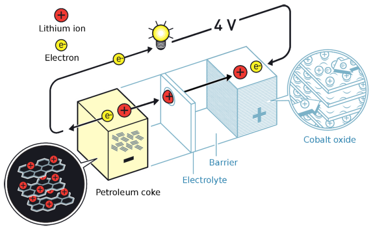自1980年起,就以古迪納夫發(fā)現(xiàn)的鈷酸鋰為基礎(chǔ),通過(guò)替換鈷元素,或摻雜鎳、鋁、鎂、錳、鐵等金屬元素,演變出了多種鋰離子電池的陰極材料。在20世紀(jì)80年代,作為鋰離子電池陽(yáng)極的材料也被報(bào)道出來(lái)——1983年,Richard Yazami博士證明了具有層狀結(jié)構(gòu)的石墨能夠可逆地嵌入、脫嵌Li+。在鋰離子電池中,放電時(shí),Li+會(huì)從石墨陽(yáng)極脫嵌,穿過(guò)電解質(zhì)嵌入鈷酸鋰中,而充電時(shí),Li+會(huì)從鈷酸鋰陰極中脫嵌,穿過(guò)電解質(zhì)后再嵌入作為陽(yáng)極的石墨層間。這種電池也被形象地稱為“搖椅電池”(rocking chair battery)。