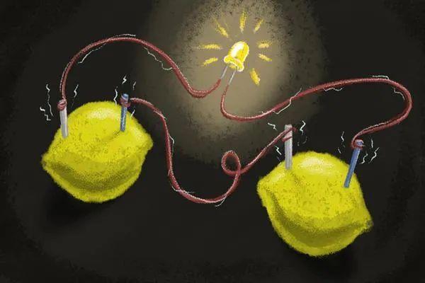 早在1800年,歷史上第一個(gè)電池就被亞歷山德羅·伏特(Alessandro Volta)發(fā)明了出來(lái)。它由幾組電池串聯(lián)而成,可以形象地看作是電池組的堆疊,而被稱為“伏打電堆”。這項(xiàng)發(fā)明奠定了電池結(jié)構(gòu)的基礎(chǔ)——兩個(gè)電極、電解質(zhì),再加上連接兩個(gè)電極的外電路。而我們熟悉的一個(gè)化學(xué)實(shí)驗(yàn)——水果電池,就是模擬了最原始的伏打電堆:將鋅片和銅片當(dāng)作兩個(gè)電極插入一個(gè)檸檬中,以檸檬中的酸為電解質(zhì),外加連接小燈的導(dǎo)線,我們就能看到燈變亮,對(duì)應(yīng)著水果電池的放電。
